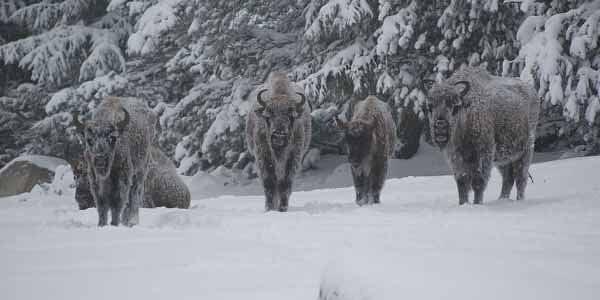 En hiver, la réserve des bisons d’Europe de Sainte-Eulalie se transforme totalement. Les paysages boisés verdoyants lozériens laissent place à la neige et à l’enchantement ! Montez pour une balade en traîneau et ouvrez grand vos yeux ! Vous découvrirez les magnifiques paysages de la Margeride enneigée et profiterez d’une ambiance magique propice à l’observation des bisons d’Europe.