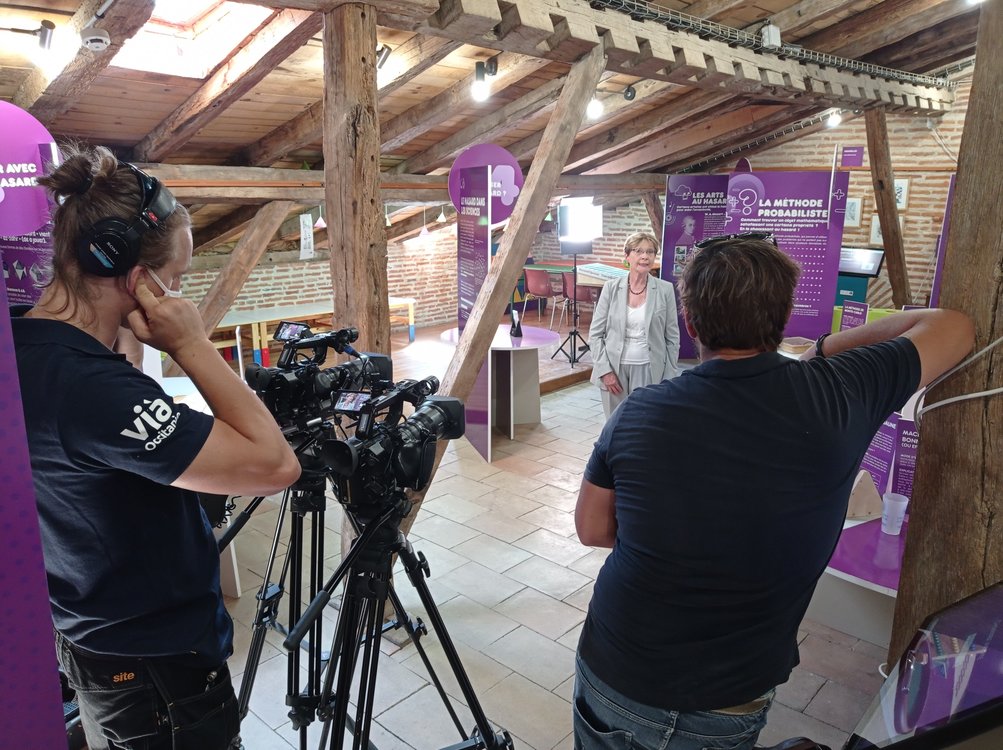 Le réalisateur, s’enquiert des buts de l’association et de son fonctionnement, des projets de Fermat Science et des activités proposées aux différents publics. Il se fait expliquer les manipulations qui accompagnent l’exposition sur le Hasard.