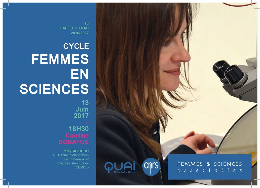 Le cycle des « cafés du quai » des Savoirs coordonnés par l’Université Fédérale, le CNRS Midi-Pyrénées et l’association Femmes & Sciences, groupe Toulouse propose un cycle dédié aux femmes en sciences. Des témoignages de scientifiques, chercheuses ou ingénieures, permettent au public de comprendre le parcours, le métier et les recherches des intervenantes mais aussi d’échanger avec elles dans un climat convivial et décontracté.