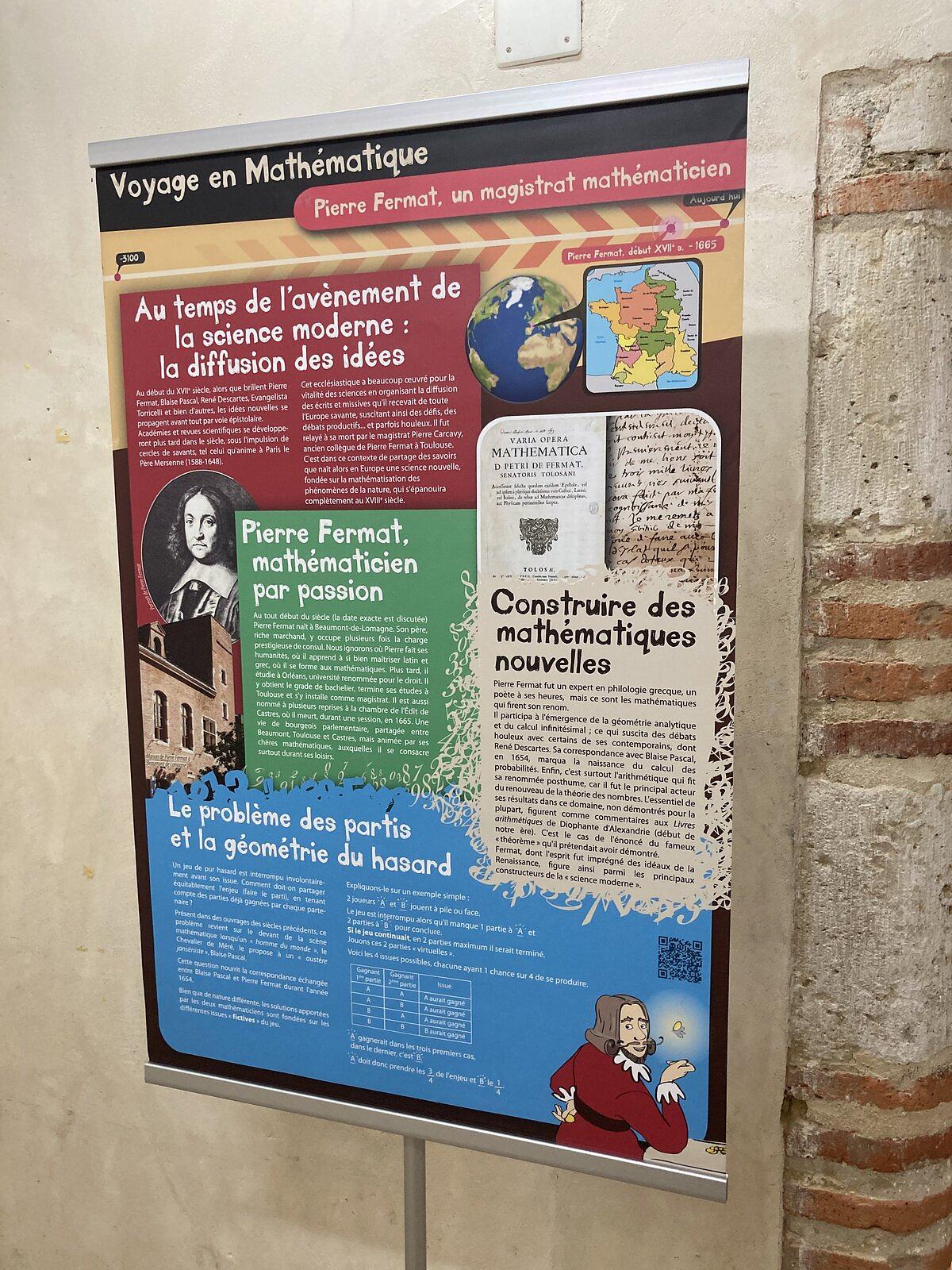 Tous les jours, du lundi au vendredi de 14 à 17 heures, dans la salle de conférences de la Maison Fermat, l’exposition Voyage en Mathématique offrira aux visiteurs l’occasion d’effectuer une plongée dans l’histoire des mathématiques en découvrant les personnalités passionnées et passionnantes de 13 savants et savantes, leur cadre de vie et leur œuvre. Quelques heures à la Maison Fermat et chacun aura l’impression d’avoir rencontré Hypatie qui fut mathématicienne et philosophe dans la ville d’Alexandrie ; Liu Hui, le noble lettré chinois ; Al Khwârizmî, le père de l’algèbre ; Fibonacci, le mathématicien voyageur et bien d’autres encore.