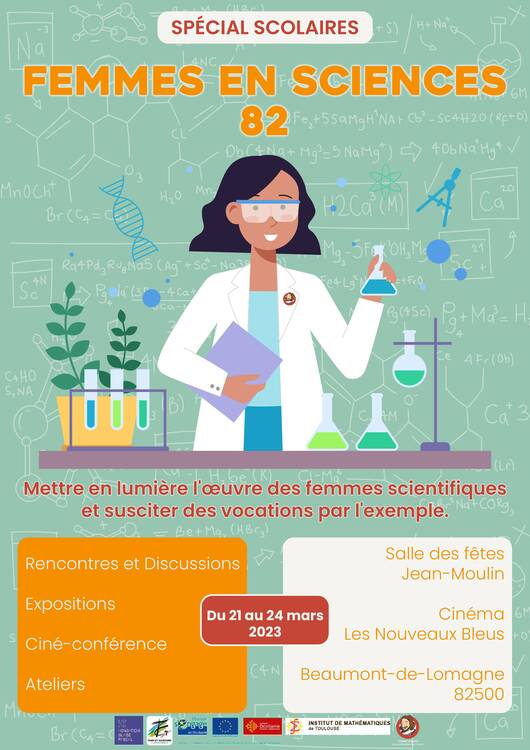 Pour cette année 2023, du 21 au 25 mars, dans le cadre de Femmes en Sciences 82, de multiples rencontres avec des femmes passionnantes permettront aux élèves, à leurs enseignants et au grand public d’apprécier le travail, les recherches, le point de vue de ces femmes de science.