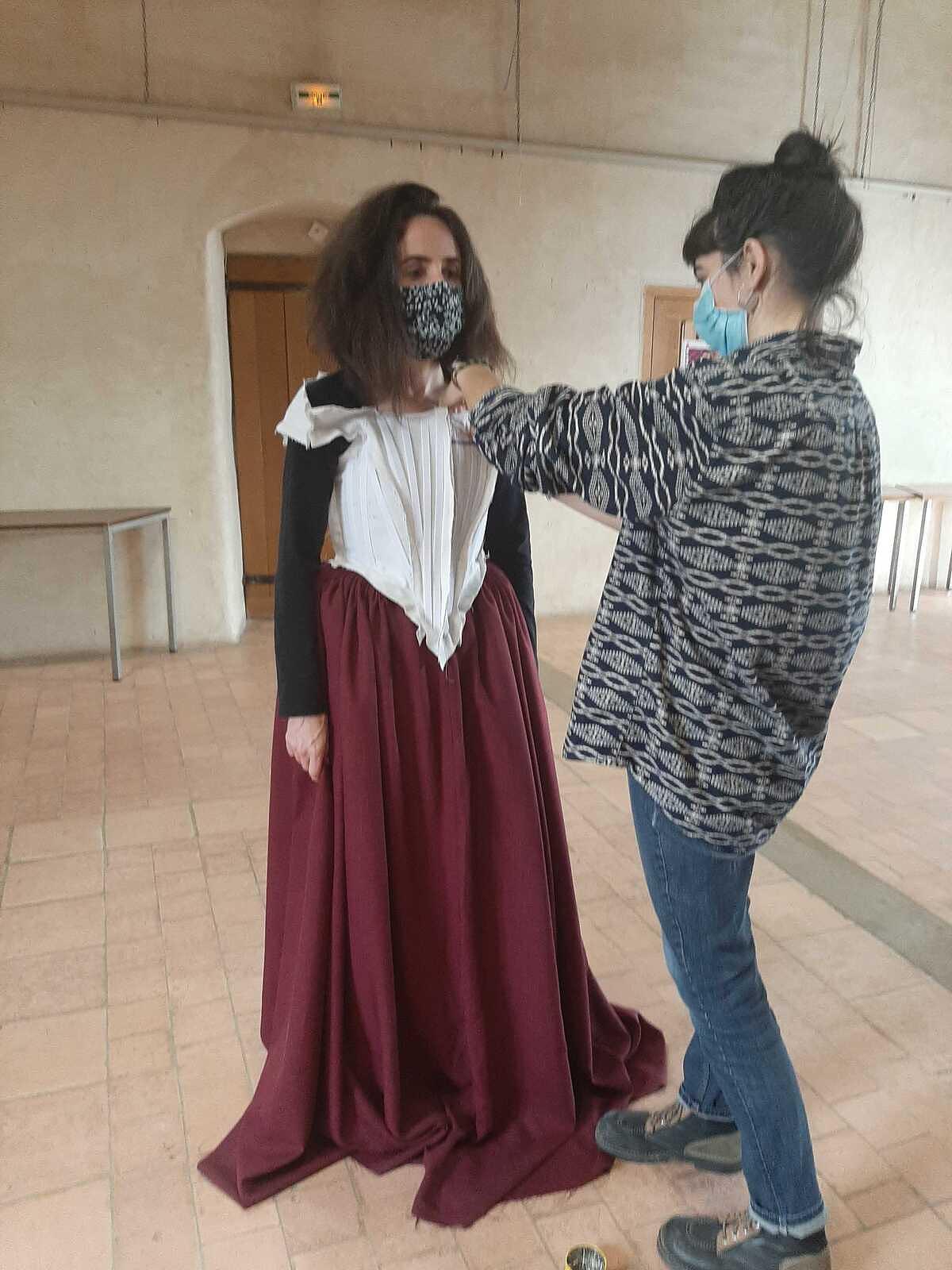 Dès la fin du deuxième confinement, malgré les nouvelles contraintes et le couvre-feu, les répétitions reprennent de plus belle. L’élan revient. De nouveaux costumes enrichissent le vestiaire des dames Fermat, on affine les jeux de scène, on se met dans la peau des personnages.