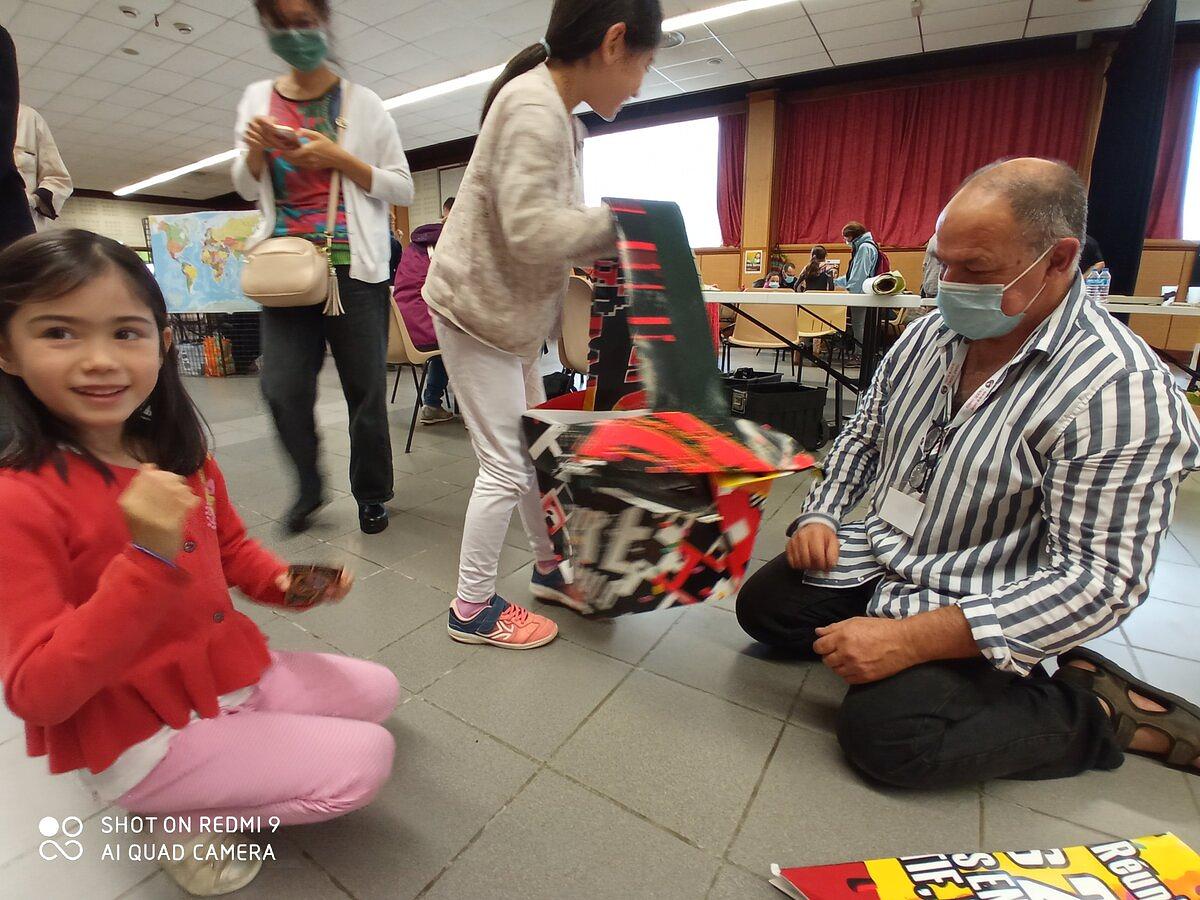 Au rayon des prouesses, les plieurs de papier de l’association Oreilles de lapin se sont affrontés, entre autres animations, à la fabrication en origami d’un cheval géant et à celle d’immenses sacs à provision créés à partir d’affiches de grande taille avec l’aide d’un petit peuple émerveillé.