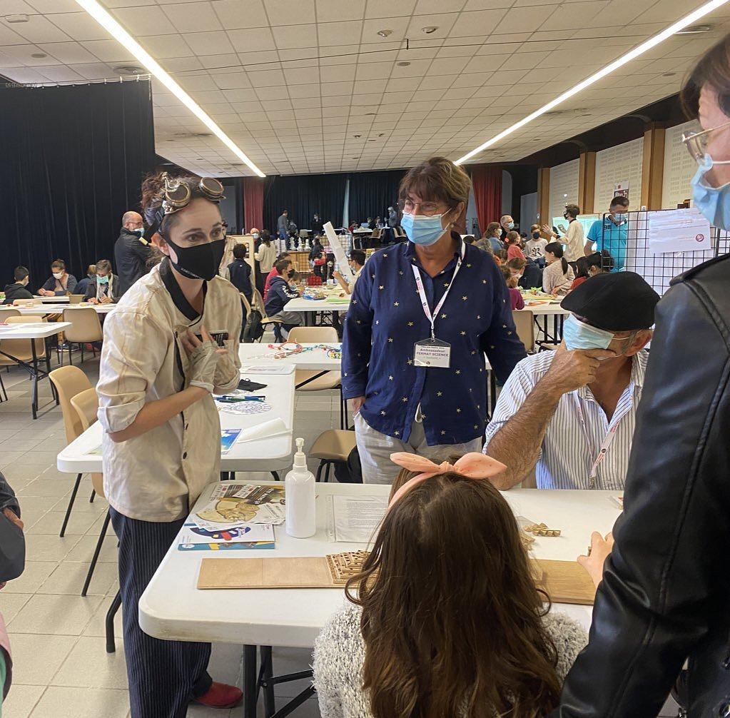 Première fête de la science et des maths organisée par l’association Fermat Science dans la salle des fêtes de Beaumont de Lomagne juste après son déménagement destiné à libérer la maison natale de Fermat en travaux pour un an avant l’ouverture de la Maison de Fermat prévue début 2023.