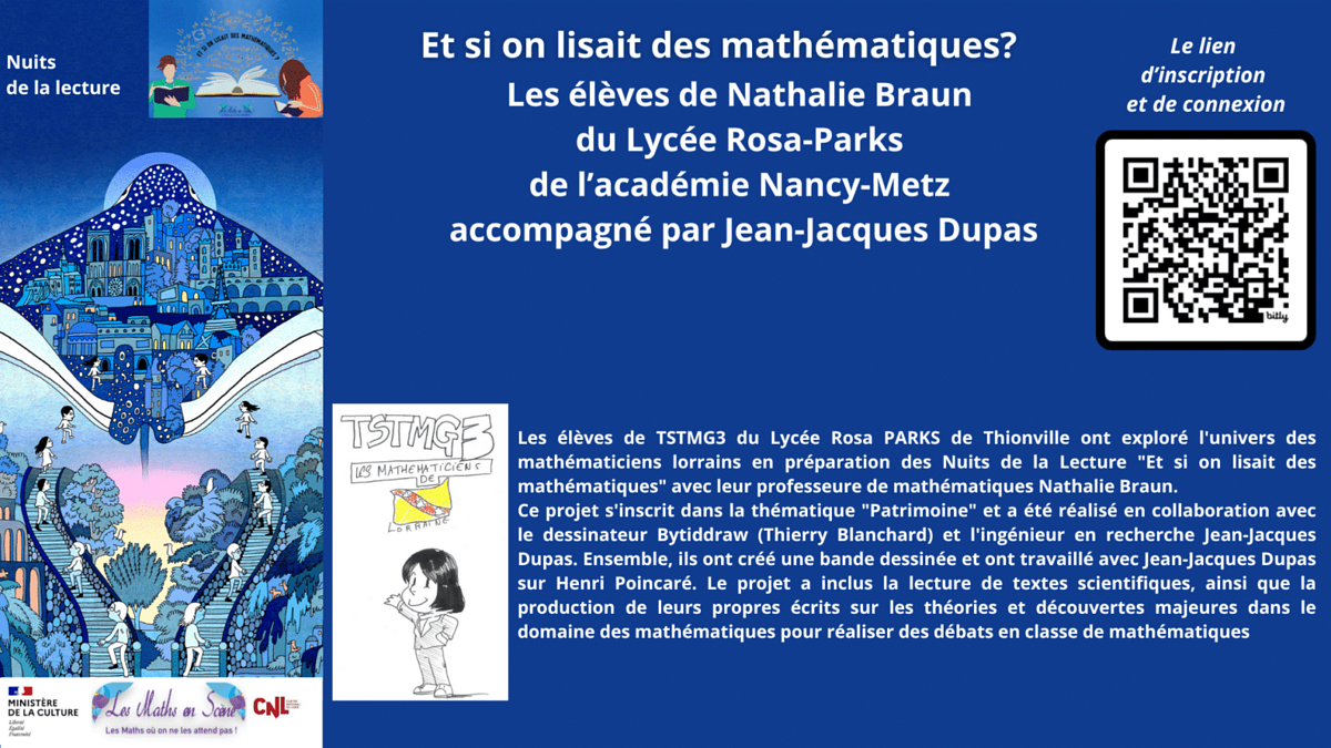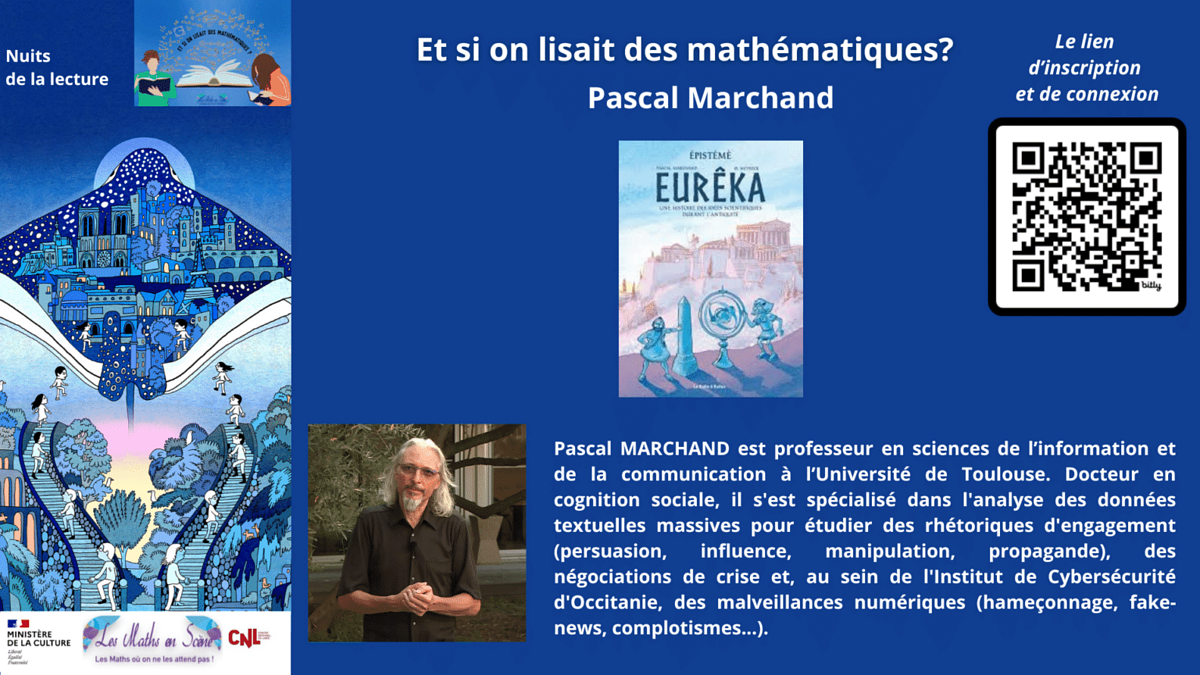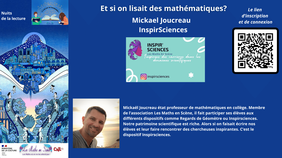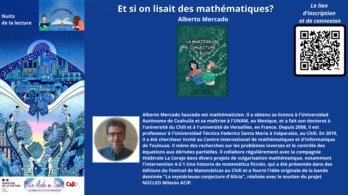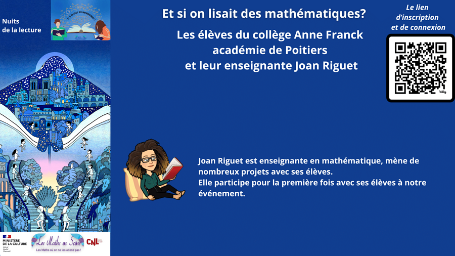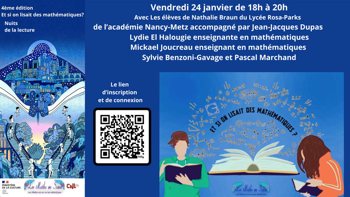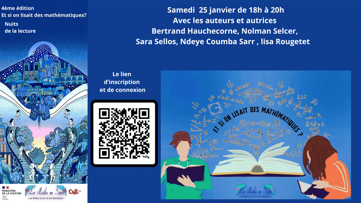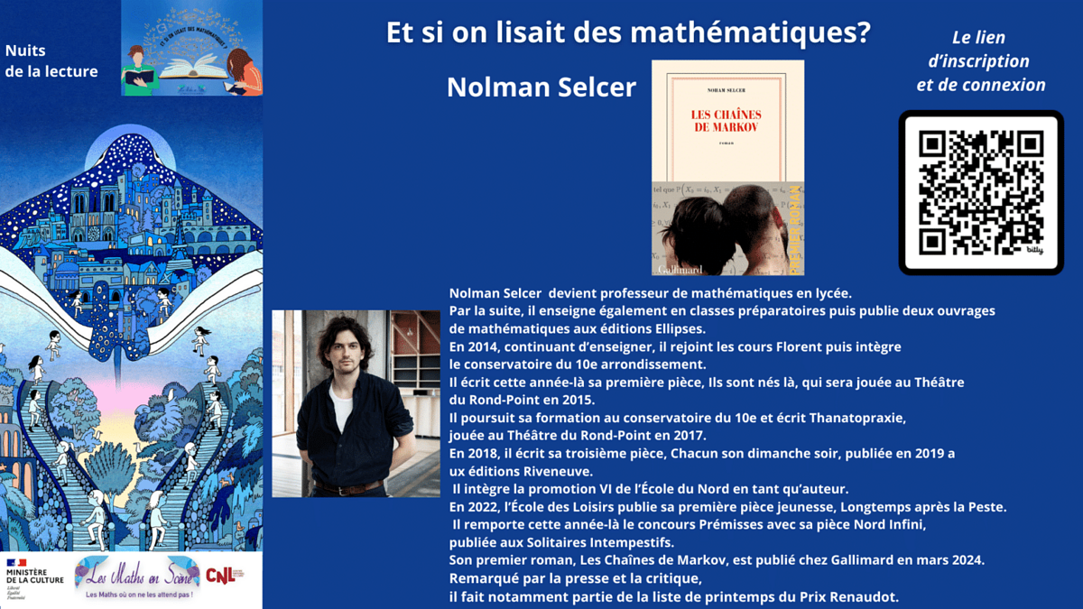 Dans le cadre des Nuits de la lecture, plus que jamais essentielles pour conquérir de nouveaux lecteurs et célébrer l'importance du livre et de la lecture, nous vous invitons à trois soirées dédiées au plaisir des mathématiques et de la lecture.