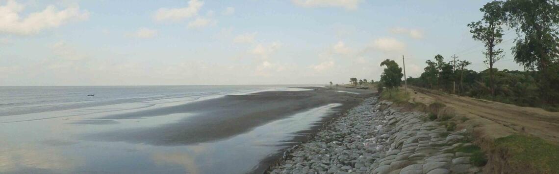 Le delta du Bengale, à cheval entre le Bangladesh et l'Inde, forme le plus vaste milieu deltaïque de la planète. Il est situé à la confluence du Gange et du Brahmapoutre. Il est soumis de façon chronique à des cyclones tropicaux violents qui provoquent des submersions marines massives. Si l’on ajoute que ce territoire est très densément peuplé et à très faible altitude, on prend la mesure des risques encourus par 3 millions d’habitants. Grâce à une approche originale de modélisation, les chercheurs ont dressé une cartographie fine de la climatologie de l'aléa submersion cyclonique, à l'échelle de tout le delta. Cette modélisation se fonde sur un ensemble statistiquement représentatif des cyclones susceptibles de survenir dans les conditions climatiques actuelles, que ce soit en terme d'intensité, de zone d'impact, ou de co-occurrence avec des niveaux de marée variés. Les résultats suggèrent qu’un nombre plus ou moins important d’habitants seront impactés, qu’ils soient localisés dans des zones protégées ou non par le réseau actuel de digues côtières. En temps normal, la marée peut atteindre 3 mètres d'amplitude mais le niveau d'eau maximal engendré par un cyclone cinquentennal (une fois en 50 ans) est double. Et pour un évènement centennal (une fois par siècle), il faut ajouter encore un mètre. Dans l'hypothèse où le réseau de digues côtières ne se romprait pas face aux assauts de l'océan, celui-ci a une hauteur adéquate pour protéger d'une submersion cinquentennale. Mais sa hauteur se montre largement insuffisante pour un évènement centennal. En croisant cette nouvelle cartographie de l'aléa submersion avec la densité de population du delta, l'étude suggère qu'environ un million d'habitants réside aujourd'hui sous la menace d'une submersion quinquennale, et plus de trois millions sont à même d'être impactés par une submersion cinquentennale.