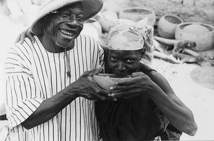 Dans toute l’Afrique, on transforme le mil, le sorgho, l’éleusine, le teff ou le fonio en bière. Les femmes, car le brassage de la bière de mil est une affaire de femmes, brassent la bière pour toutes les occasions : consommation domestique ou rituelle, pour les fêtes de village, mais aussi pour la vente directement. Lieu emblématique de la vente de bière de mil, le cabaret prend plusieurs formes. En ville, il représente un espace d’exercice de la démocratie et il se fait symbole de cette économie exclusivement féminine.