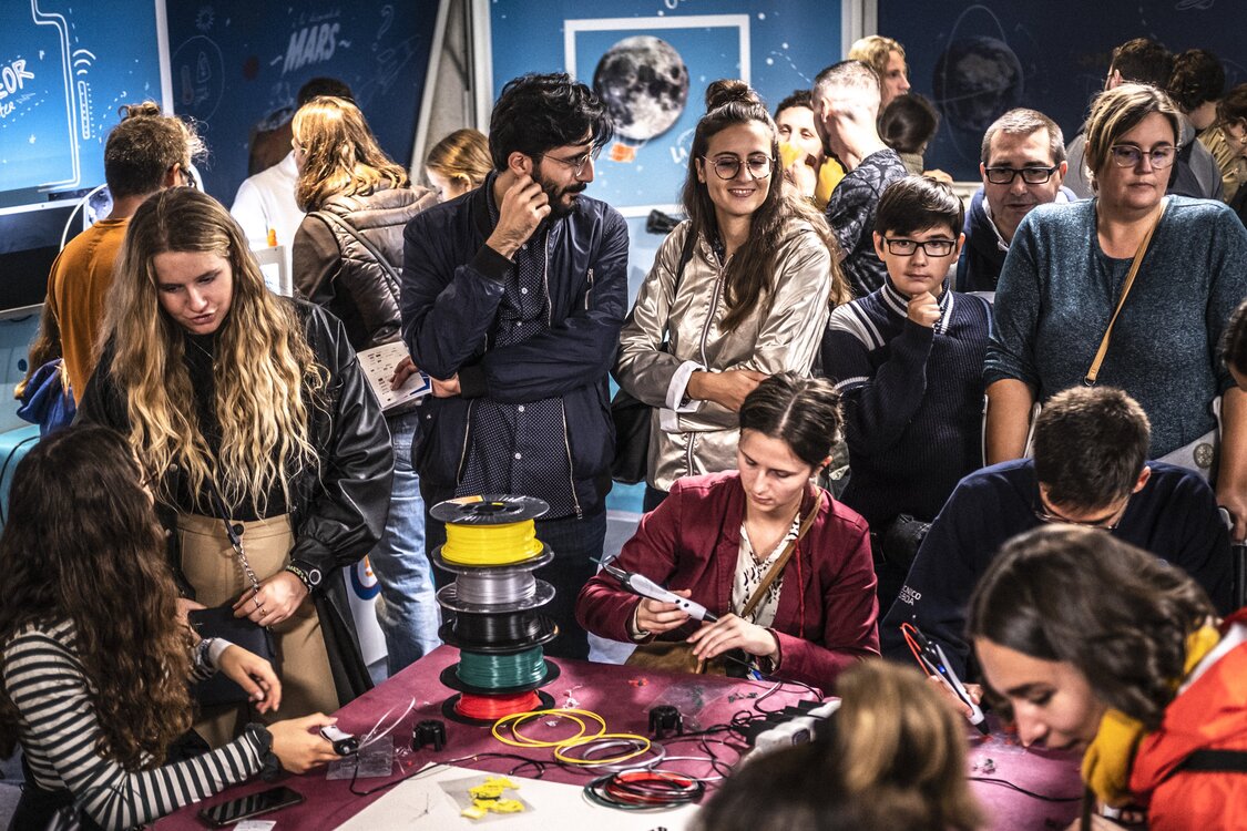 30 septembre 2022, 18h. Me voilà dans le bus, le programme entre les mains. Je l’ai depuis un bout de temps, mais ça y est, c’est enfin ce soir, La Nuit Européenne des Chercheurs à la Cité de l’Espace ! Je suis tellement impatiente… Je vois déjà la réplique de la fusée Ariane 5 par la fenêtre. Les portes du bus sont à peine ouvertes que je m’empresse de descendre et de me diriger vers l’entrée. Ici, le premier casse-tête de la soirée commence : comment s’attache le bracelet que l’on nous distribue ? Du petit “ça sert à quoi ?” d’une petite fille à ma droite au “comment ça marche ?” d’une personne âgée à ma gauche, c’est dans une ambiance familiale et joyeuse que je franchis l’entrée. Je m’avance un peu et découvre les jardins sur une musique un peu venue d’ailleurs. L’atmosphère qui s’en dégage est assez intrigante et me plonge dans un autre univers. Le plus amusant, ce sont les réactions des enfants lorsqu’ils découvrent le robot explorateur YUTU-2 avant même d’entrer dans la Cité.