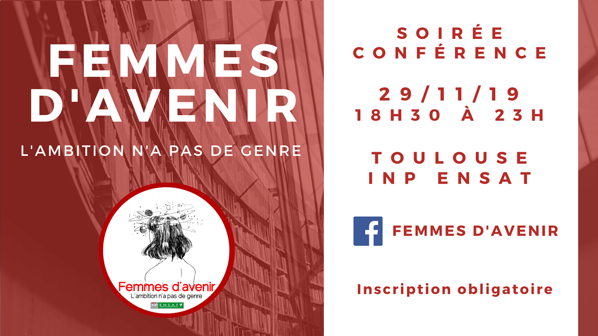 Organisée par 10 étudiantes et diplômées de Toulouse INP - ENSAT, la conférence "Femmes d'avenir" a pour objectif de mettre en lumière des parcours féminins ambitieux et inspirants. Riches de leurs expériences, les intervenantes aborderont les questions d'ambition, de vocation, de choix de carrière, d'entourage et de management. Adressée aux étudiantes et aux étudiants de Toulouse INP, elles espèrent influencer positivement les mentalités et les trajectoires socio-professionnelles.