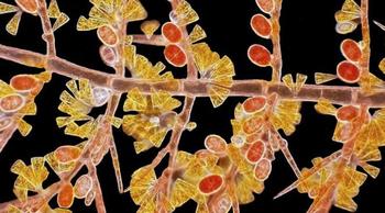 Visuel : © Arlene Wechezak. Légende : l'appareil reproductif des algues rouges.