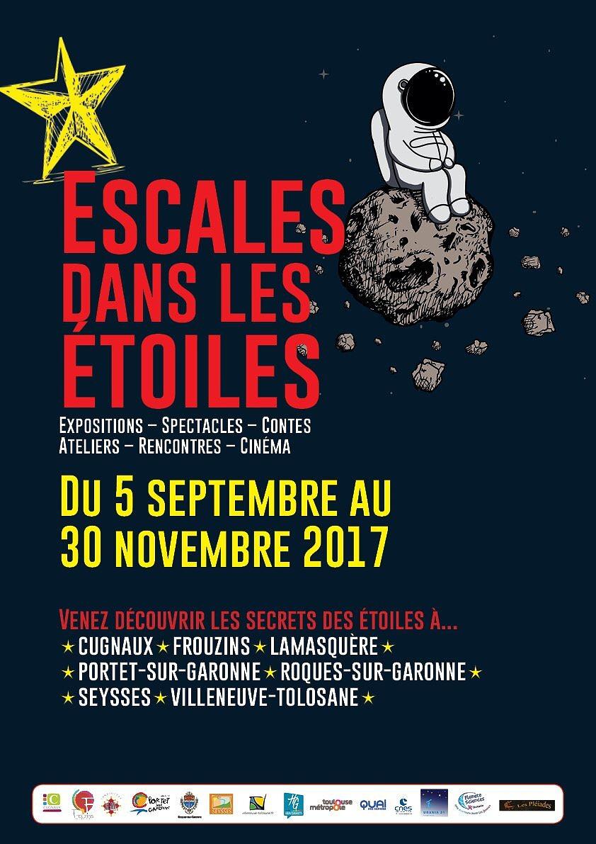 Entre septembre et novembre, Cugnaux et Villeneuve-Tolosane s’associent à plusieurs villes du sud ouest de la région toulousaine pour proposer de belles escales dans les étoiles. Au fil des communes, vous découvrirez comment le ciel inspire les artistes à travers expositions, contes, spectacles ou films et vous pourrez participer à des ateliers et des rencontres autour de l’astronomie et de la découverte céleste.