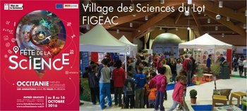 - Un village des sciences gratuit à Figeac (espace François Mitterrand, salle du Quercy), du mercredi 12 au samedi 15 octobre 2016 (stands, animations, expositions, observations, conférences.)