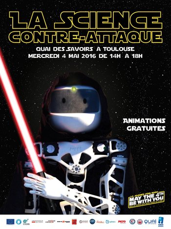 Mercredi 4 mai 2016 de 14h à 18h, le hall du Quai des Savoirs s’envole vers une galaxie lointaine pour célébrer le « May the 4th », célébration internationale organisée chaque année et directement inspirée du célèbre slogan de la saga Star Wars : « May the force be with you » (« Que la force soit avec toi »).