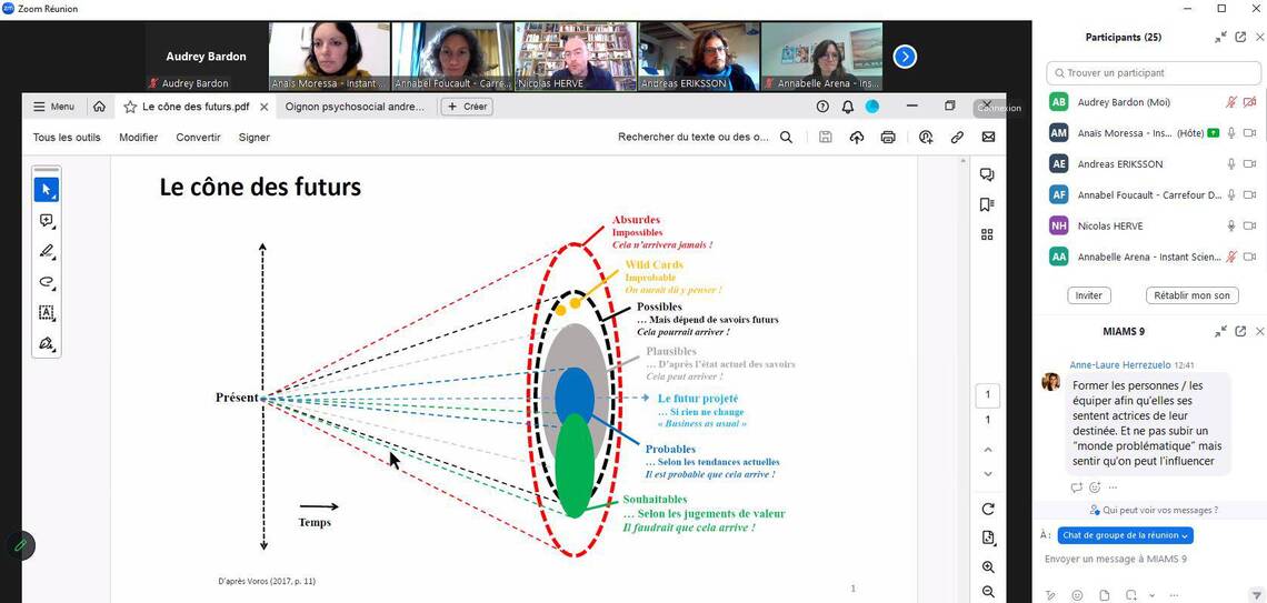 Certains outils comme le "cône des futurs" suppriment le côté inéluctable et ouvrent le champ des futurs afin d'en atténuer l'aspect anxiogène. Ce cône a pour but de permettre aux plus pessimistes d’avoir “des germes d’espoir” précise Nicolas Hervé.