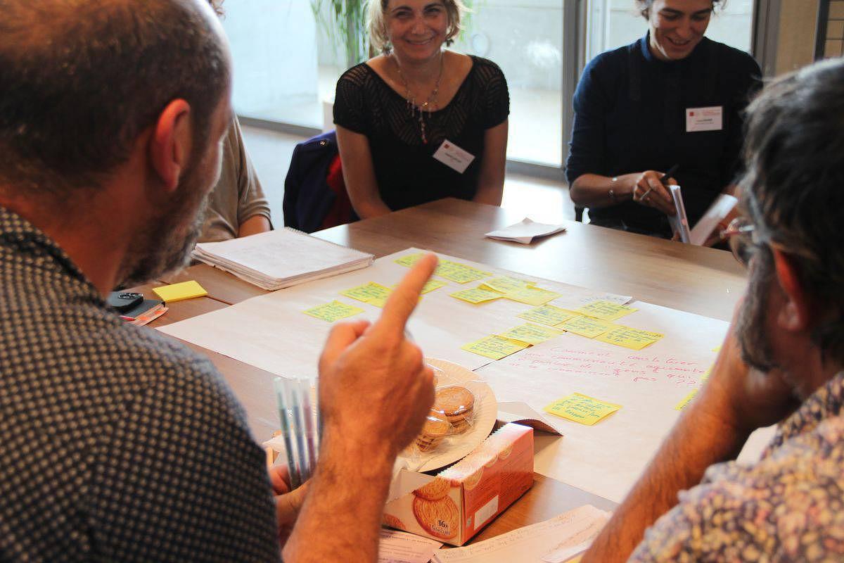 Accompagnés par Julien Mary, historien, ingénieur de recherche au CNRS et référent scientifique de la MSH Sud, ainsi que par Delphine Laurant, Coordinatrice de la Boutique des sciences Trait d’Union de la MSH Sud, une vingtaine de professionnel-les ont brainstormé afin de questionner ces problématiques.
