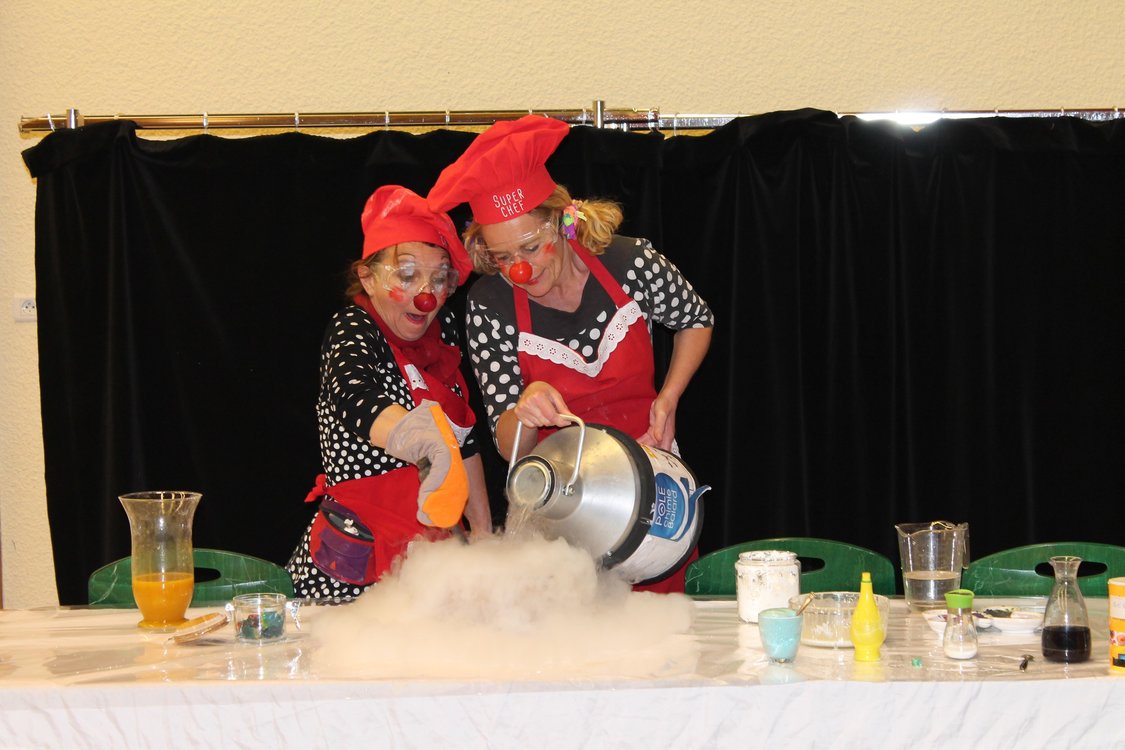 L'association "Les Moléclowns" propose le spectacle "Marmites et molécules", d'initiation à la chimie pour enfants d'écoles primaires utilisant le personnage du clown en tant que médiateur scientifique. Au cours du spectacle, deux clowns préparent un repas complet, depuis l'apéritif jusqu'aux desserts et café : le scénario sert de prétexte pour montrer aux enfants des expériences culinaires simples, que les enfants peuvent reproduire chez eux, mettant en jeu des phénomènes physico-chimiques. Après le spectacle, qui dure environ 40 minutes, un temps est consacré à la discussion pour répondre aux questions des enfants sur les expériences présentées au cours du spectacle.