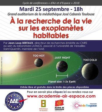 Conférence organisée par l’Académie de l’Air et de l’Espace en partenariat avec la Médiathèque José Cabanis, la Mairie de Toulouse et la Cité de l’espace.