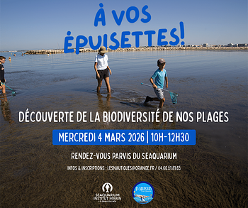 À l’occasion de la 32ème édition du salon Les Nautiques – Port Camargue, les médiatrices du Seaquarium Institut Marin vous proposent de partir à la découverte de la biodiversité de nos plages et de nos herbiers.