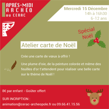 Sur réservation par mail à animation@cerac-archeopole.fr ou par téléphone au 09 66 41 15 56