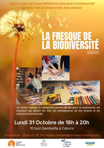 Dans le cadre du projet Mobilisons-nous pour la biodiversité, notre association Carrefour des Sciences et des Arts vous propose une soirée collective et participative autour de l’outil “la Fresque de la Biodiversité”.