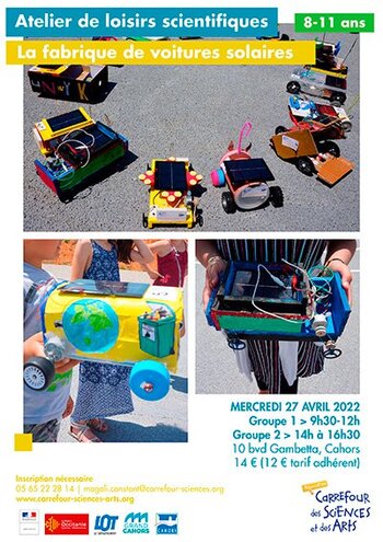 POUR LES 8-11 ANS : deux sessions d'ateliers LA FABRIQUE DE VOITURES SOLAIRES prévues le MERCREDI 27 AVRIL :