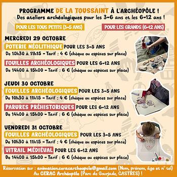 Le programme des vacances de la Toussaint au CERAC Archéopôle est là !
