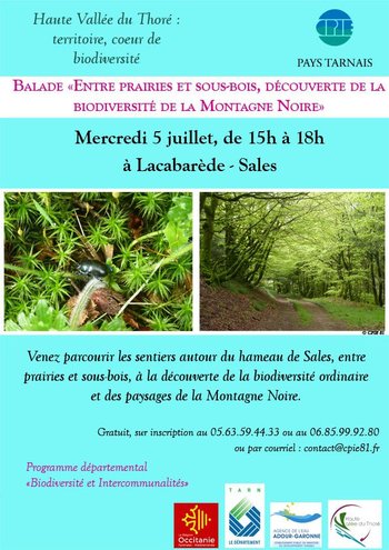 Venez parcourir les sentiers autour du hameau de Sales, entre prairies et sous-bois, à la découverte de la biodiversité ordinaire et des paysages de la Montagne Noire.