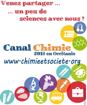 * Le projet Canal Chimie recouvre des actions de « Chimie et Société Occitanie » et ses partenaires dans des villes et villages de la région Occitanie-Pyrénées Méditerranée, bordant le Canal du Midi et le Canal latéral à la Garonne du 29 mai au 5 juillet 2018. www.chimieetsociete.org