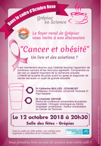 Dans le cadre de la fête de la science et d'Octobre rose, le mois de sensibilisation à la lutte contre le cancer du sein, le Foyer rural de Grépiac vous invite, le vendredi 12 octobre à 20h30 à la salle des fêtes de Grépiac, à une discussion autour du thème :