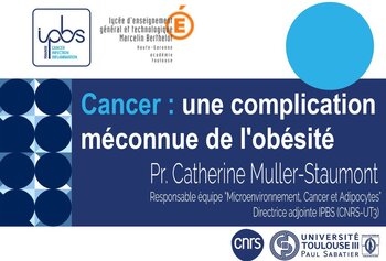 Une conférence organisée par le lycée général et technologique Marcelin Berthelot, en partenariat avec l'Institut de pharmacologie et de biologie structurale (IPBS-Toulouse) et donnée par le Professeur Catherine Muller-Staumont, responsable de l'équipe "Microenvironnement, Cancer et Adipocytes" et directrice adjointe de l'IPBS-Toulouse.