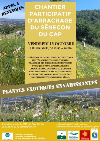 Le Séneçon du Cap est une plante exotique arrivée accidentellement lors du transport des balles de laine importées d’Afrique du Sud à destination de l’industrie Mazamétaine. Elle a depuis envahi les bords de route, les terrains vagues et les prairies agricoles créant parfois des intoxications du bétail.