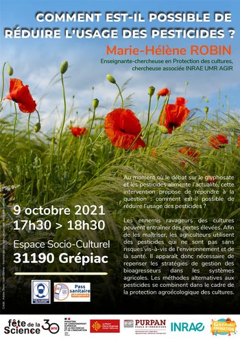 Conférence-débat sur l'usage et la réduction des pesticides, par Marie-Hélène Robin, enseignante-chercheuse en protection des cultures, chercheuse associée INRAE UMR AGIR