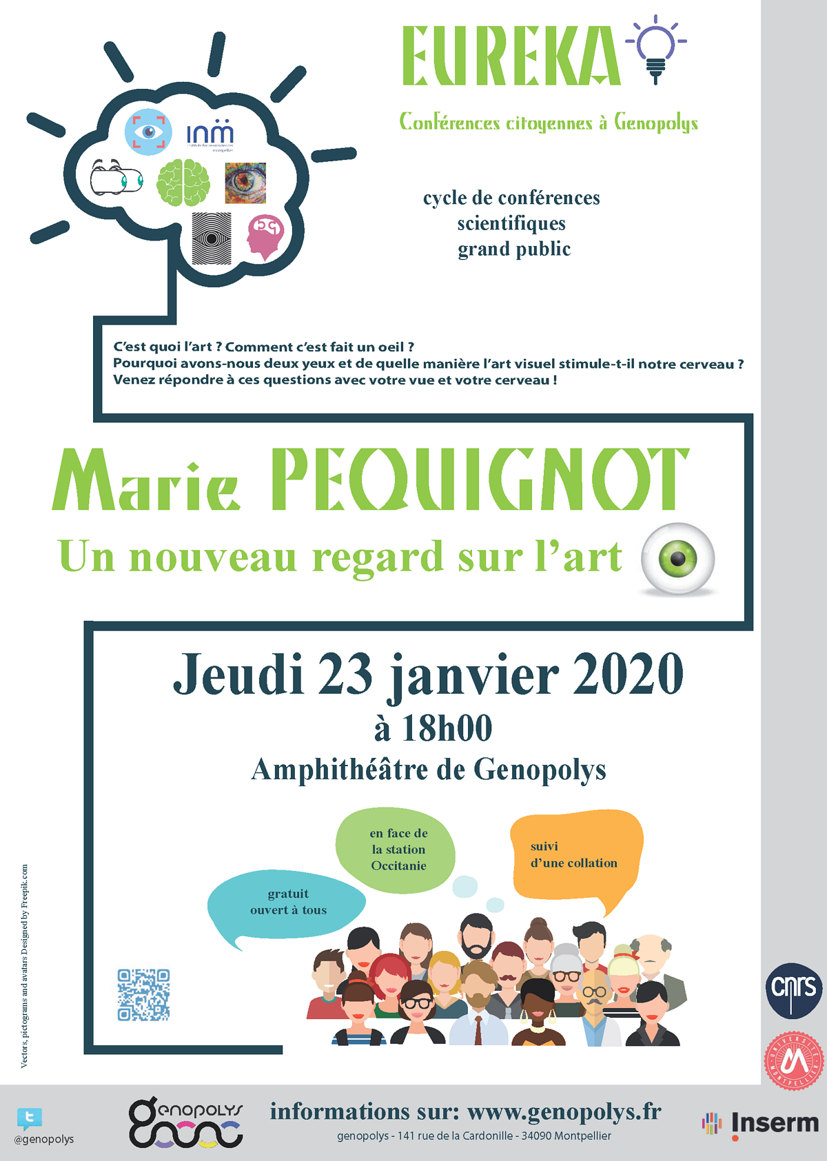 Après une thèse en Génétique Humaine soutenue en 2002, sur la mort cellulaire au cours du développement de la rétine chez la souris, et un post-doctorat sur l’immunothérapie du cancer du côlon en utilisant des cellules mourantes, Marie Péquignot a rejoint en 2006 l’équipe Vision du Pr Christian Hamel à l’Institut des Neurosciences de Montpellier, pour travailler sur la compréhension des maladies rétiniennes d’origine génétique et la mise au point de thérapies. Elle obtient en 2013 un poste de chercheuse Inserm. Dès sa thèse, elle met en place et anime des ateliers de médiation scientifique à destination des enfants de primaire. Depuis, elle développe des ateliers pour les scolaires, collégiens et lycéens (ateliers et conférences) et le Grand Public, en particulier au sein de Genopolys, auquel elle dédie une part importante de son temps ces dernières années.