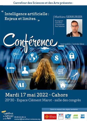 Mardi 17 mai 2022 nous accueillerons à Cahors Mathieu Serrurier. Sa conférence traitera de l’intelligence artificielle tout en questionnant les enjeux et limites de cette technologie.