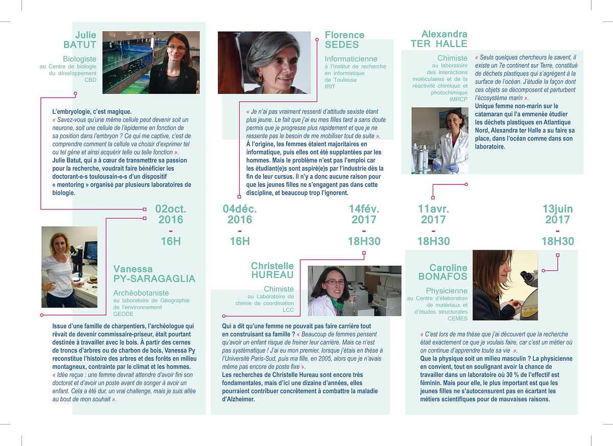 Dans le cadre des "cafés du quai" des savoirs coordonnés par l’Université Fédérale, le CNRS Midi-Pyrénées et l’association Femmes & Sciences, groupe Toulouse, proposent un cycle dédié aux femmes en sciences. Des témoignages de scientifiques, chercheuses ou ingénieures, permettent au public de comprendre le parcours, le métier et les recherches des intervenantes mais aussi d’échanger avec elles dans un climat convivial et décontracté.