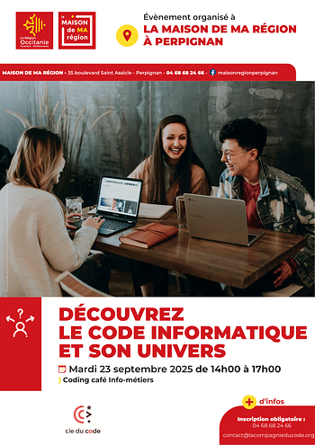 La Compagnie du Code vous propose un atelier gratuit et ouvert à toutes et tous organisé avec la Maison de Ma Région - Perpignan :