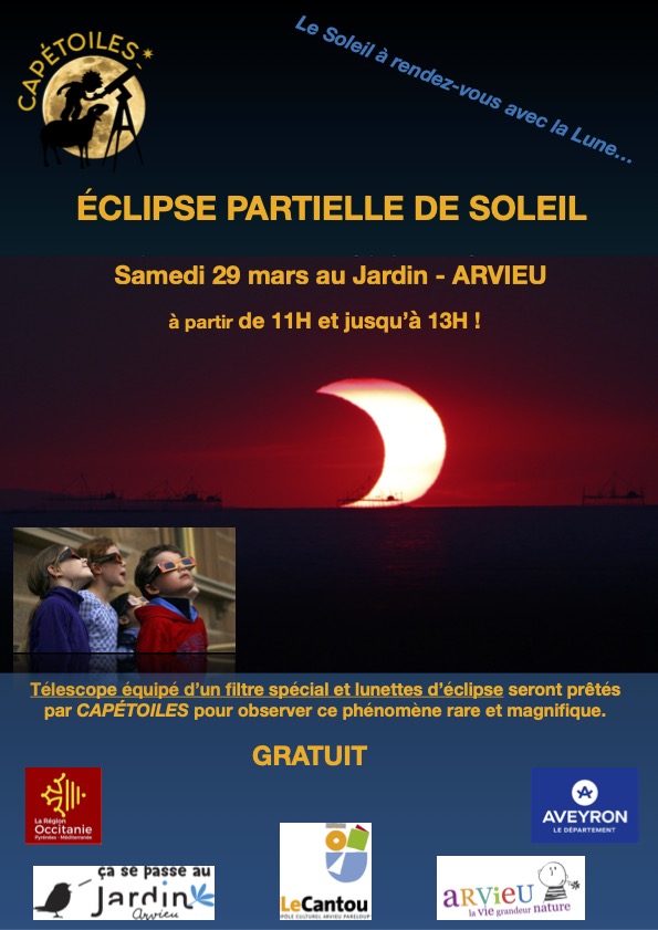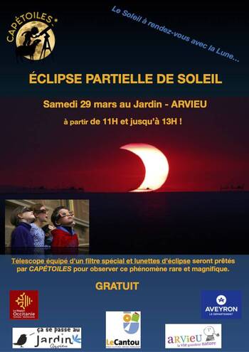 Samedi 29 mars de 11h à 13h à Arvieu (12), venez observer un phénomène rare et magnifique en toute sécurité : "une éclipse partielle de Soleil".