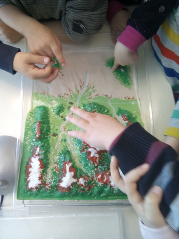 Répartition de l'eau sur la planète (expérience) + planisphère sur le cycle naturel de l'eau (maquette)