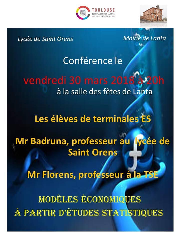 Dans le cadre de l’ESOF 2018, Mr Jean-Pierre Florens professeur de mathématiques à la TSE, Mr Pierre Badruna  professeur de mathématique au Lycée Pierre Paul Riquet et les élèves de terminale ES du lycée de saint Orens vous proposent  le thème  :