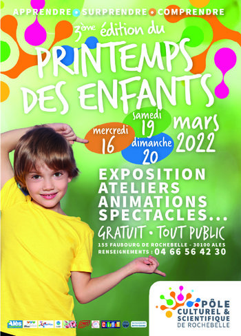 Eurêk'Alès participe à la 3ème édition du printemps des enfants qui a lieu les 16, 19 et 20 mars 2022 au Pôle Culturel et Scientifique de Rochebelle.