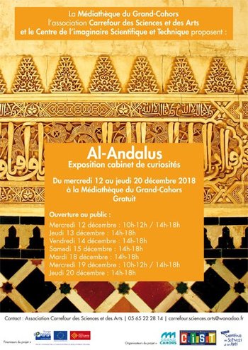 L'Espagne arabo-berbère du Moyen Âge préserva et développa de nombreux savoirs antiques, suscitant de multiples échanges de connaissances à l'origine de la science moderne. Cette exposition propose de découvrir la période Al-Andalus sous forme de cabinet de curiosités mettant en scène maquettes, objets, toiles, fresques permettant de s’immerger dans cette période passionnante, ses sciences et savoirs, son contexte historique, philosophique et artistique. Elle renvoie aussi à notre présent, démontrant l’importance des questions posées durant l’antiquité et le Moyen-âge, et comment elles furent la source des progrès scientifiques et techniques actuels sur les thématiques telles que médecine, astronomie, sciences naturelles ou encore agriculture.
