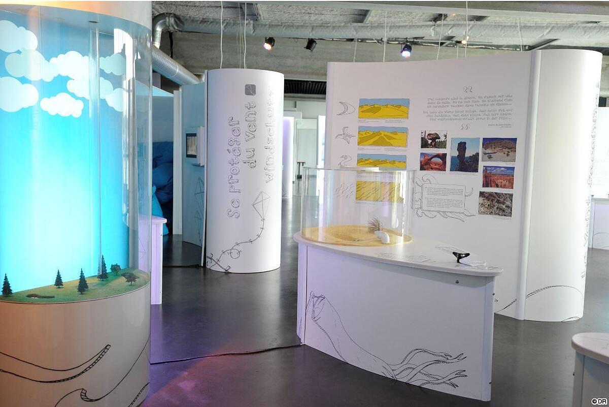 Au-delà de fournir des explications sur l’origine du vent, l’exposition s’attache également à étudier la relation de ce fluide invisible en mouvement avec l’Homme d’un point de vue culturel et géographique, en abordant ses attributs antagonistes : nous subissons le vent quand il est impétueux, mais il nous rend service quand il est apprivoisé. Bénéfique ou destructeur, il agit sur notre environnement, il transporte, détruit et façonne nos paysages.