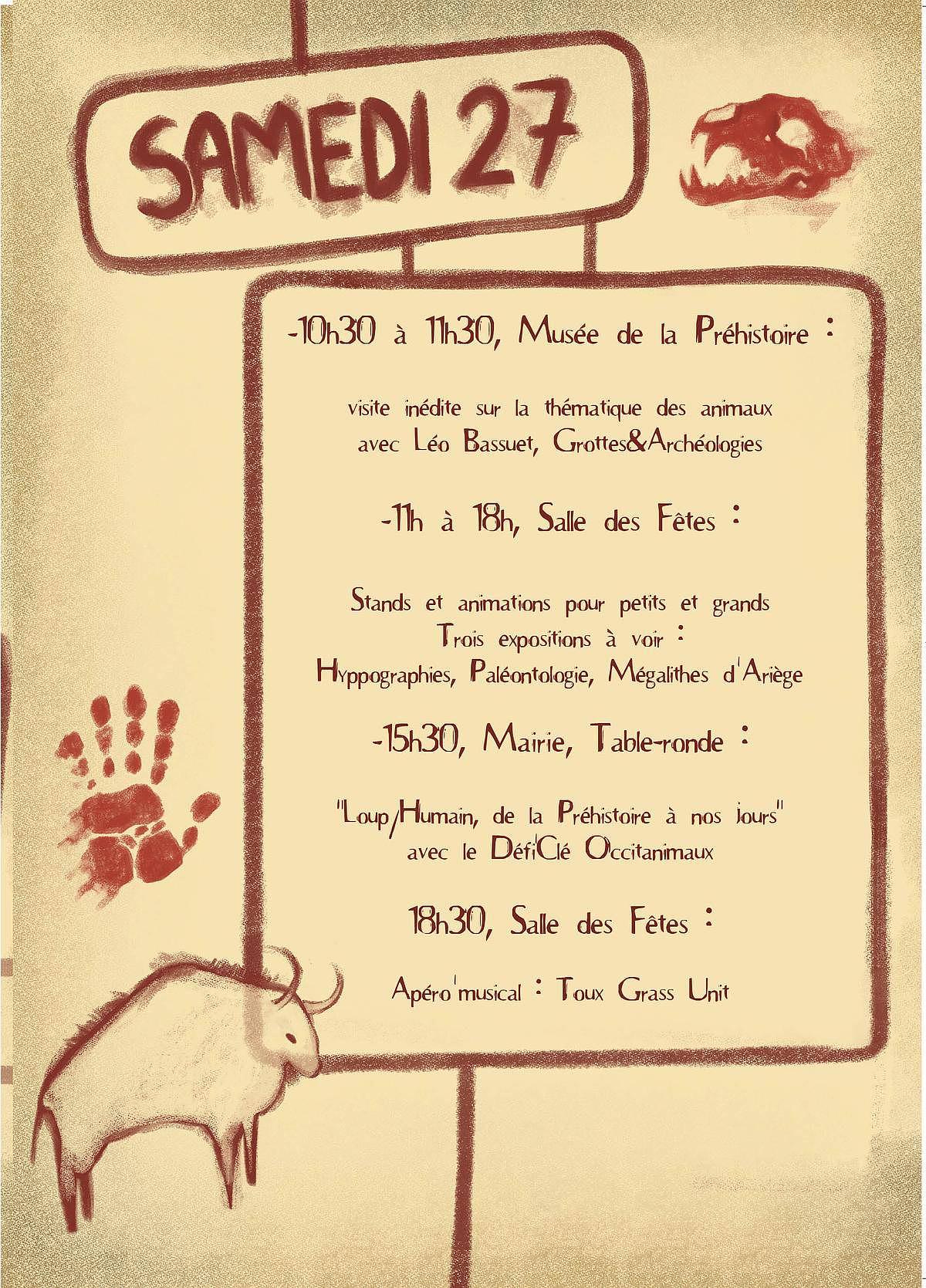 De 10h30 à 20h : visite originale du musée de la Préhistoire, exposition Mégalithes d'Ariège, stands, animations, exposition Paléontologie, conférence, apéro'concert...