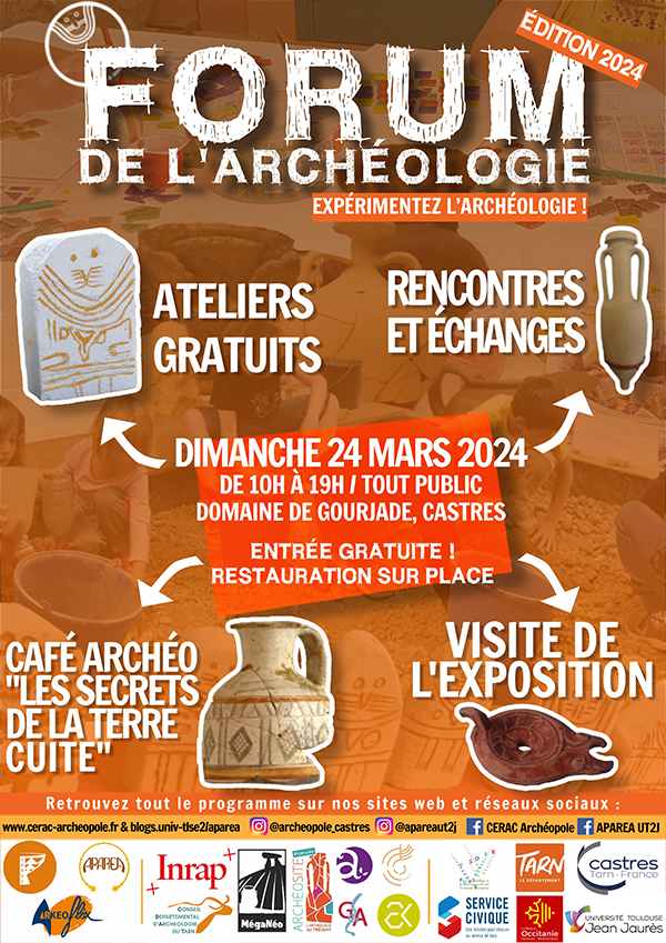 Un événement organisé par le CERAC en partenariat avec l’APAREA (association étudiante de l'université Toulouse Jean Jaurès), avec le soutien de la Région Occitanie et de la Ville de Castres. De nombreux partenaires seront présents : l’Institut National de Recherches en Archéologie Préventive (INRAP), le Musée de Millau et des Grands Causses et Site archéologique de la Graufesenque (Millau), l’Archéosite de Montans (Tarn), le musée de l’Aurignacien (Haute-Garonne), les associations Grottes & Archéologies, le Conseil Départemental d’Archéologie du Tarn (CDAT) et Méganéo.