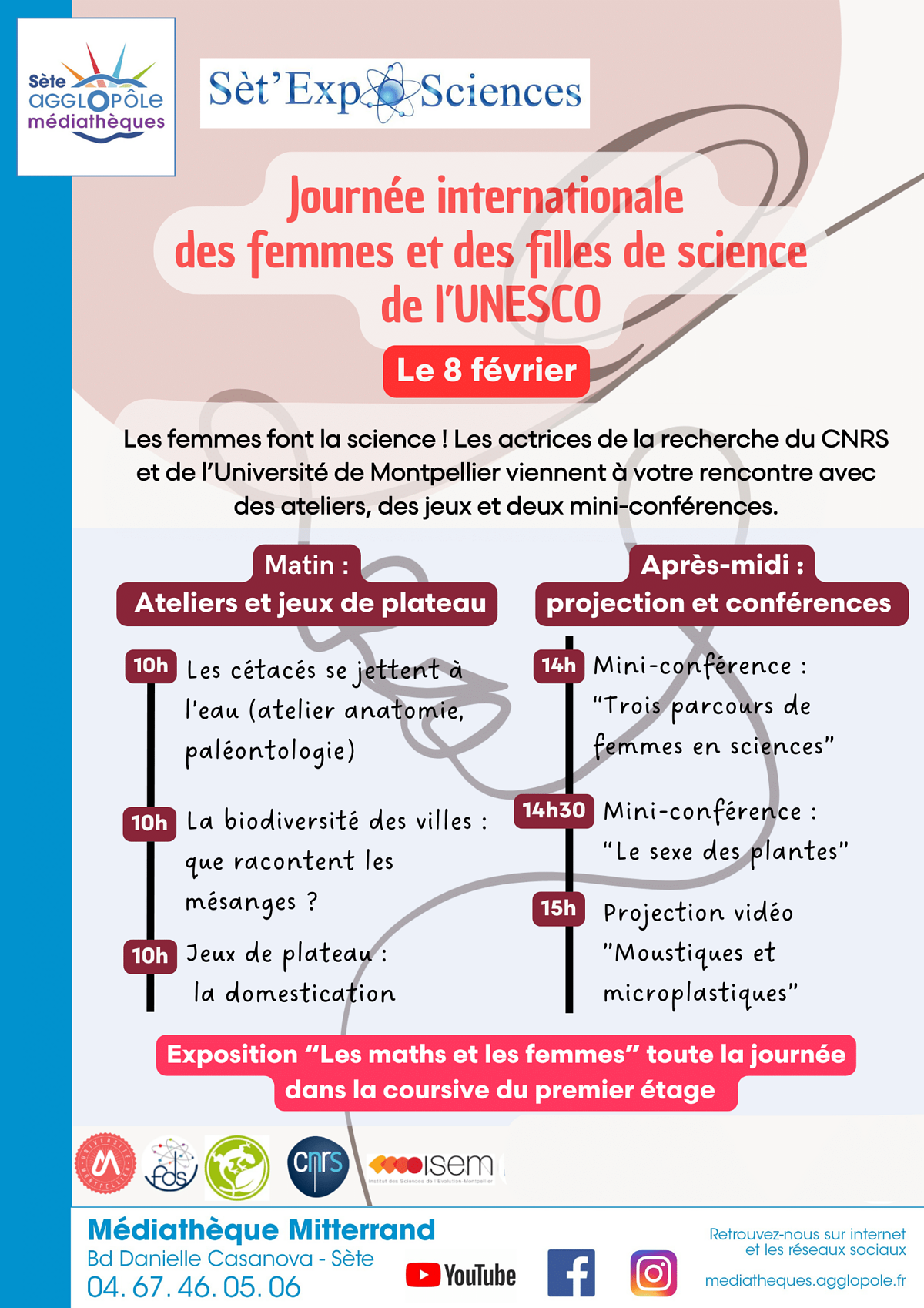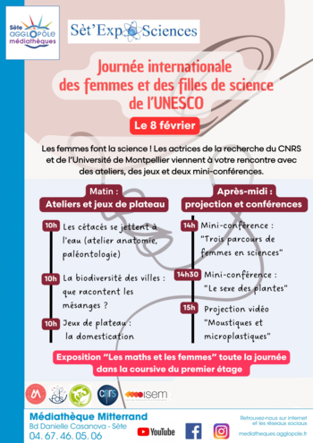Le 8 février avec Les médiathèques de Sète agglopôle méditerranée Mitterrand de Ville de Sète nous mettrons à l'honneur les filles et femmes de sciences à l'occasion de la journée internationale de l'UNESCO.