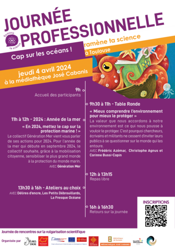 Dans le cadre du projet Sciences en médiathèque, Délires d’encre organise une journée professionnelle à Toulouse sur la thématique Cap sur les Océans, le jeudi 4 avril 2024. Elle se déroulera précisément à la médiathèque José Cabanis de Toulouse.