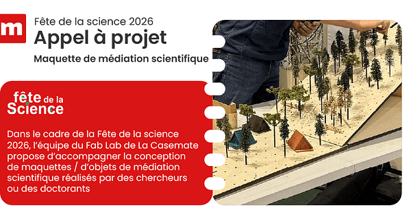 Dans le cadre de la Fête de la science 2026, l’équipe du Fab Lab de La Casemate propose d’accompagner la conception de maquettes / d’objets de...