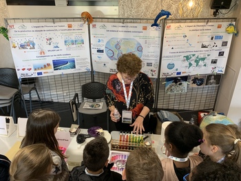 Au travers d’expériences simples et ludiques sur l’eau abordant notamment les notions de densité et de pH, l’atelier « Splash Lab » a pour objectif de sensibiliser le public aux phénomènes de circulation océanique, d’acidification des eaux et de pollution de l’océan par les macrodéchets. Plus largement, cet atelier traite de l’impact de la pollution anthropique sur l’océan et permet d’appréhender le concept de « continent plastique ».