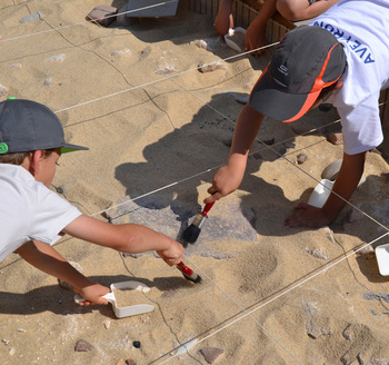 Après une présentation du métier d'archéologue, les fouilleurs en herbe participent en équipe, avec l'aide des médiateurs, à la fouille archéologique sur des bacs concernant la Préhistoire ou l'Antiquité. Ils vont tenter de comprendre l'époque et la fonction des vestiges découverts.