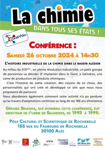 Dans le cadre de l'exposition La chimie dans tous ses états !, l'association Eurêk'Alès vous propose un cycle de conférences dont la première aura lieu le 26 octobre à 14h30.